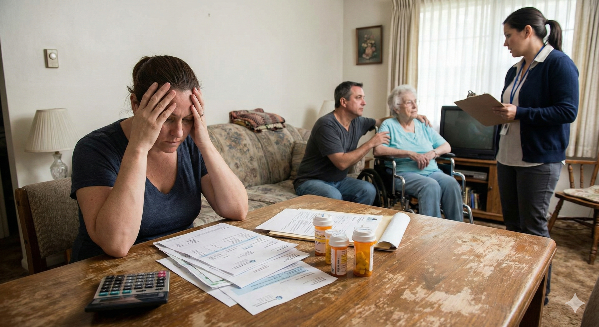 ▲「滿桌的醫療單據與計算機,代表善意介入後,邊緣家庭不可承受之重。」 /AI示意圖