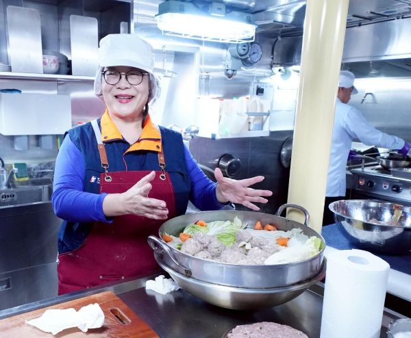 【視傳媒記者吉雄世高雄報導】海洋委員會主委管碧玲2月2月15日與海巡署長、艦隊分署長,三人同登長濱艦親手製作年菜慰勞海巡基層,這也是管主委連續三年,為海巡同仁親自下廚料理。管碧玲堅持獅子頭要純手工揉捏出筋,加入大量蔬菜烹煮,滿滿的疼惜與關懷入味,用媽媽的愛,謝謝海巡守護國家!